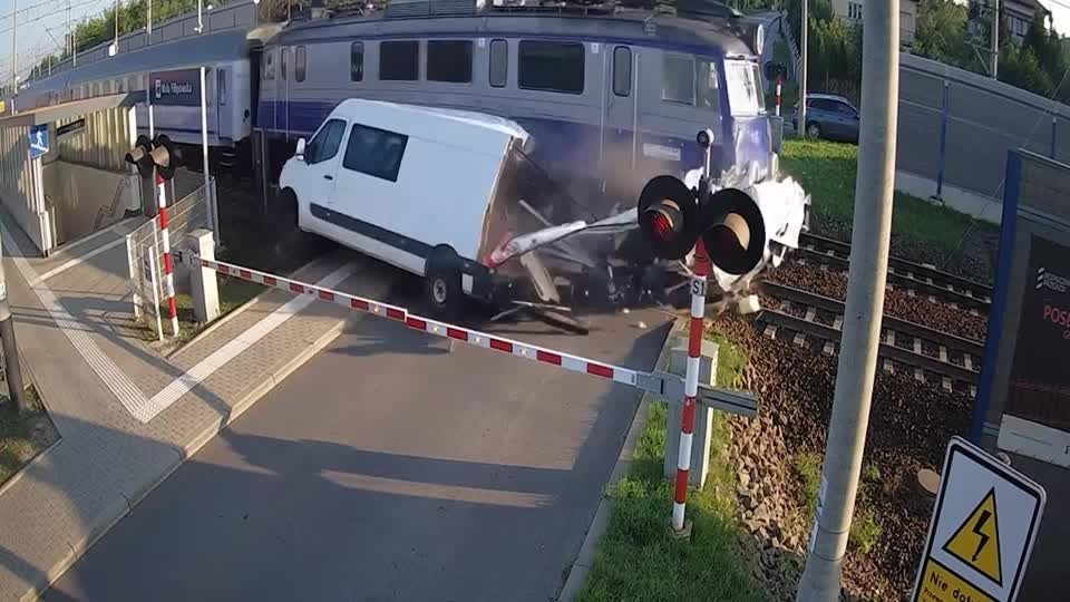 VÍDEO flagra van sendo destruída ao ser atropelada por trem na Polônia