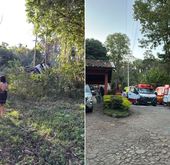 VEJA VÍDEOS – Micro-ônibus com 38 passageiros tomba na BR-364