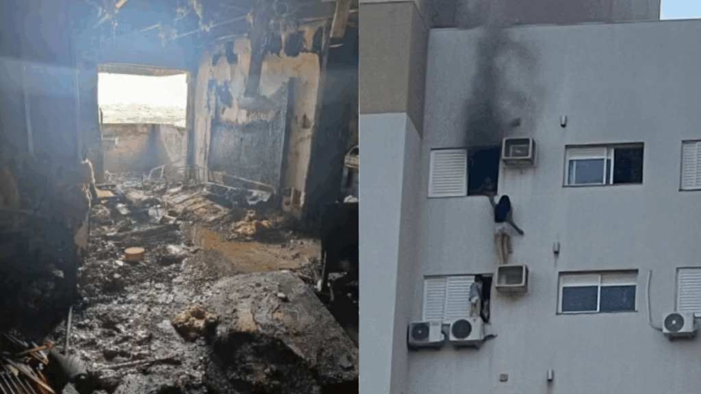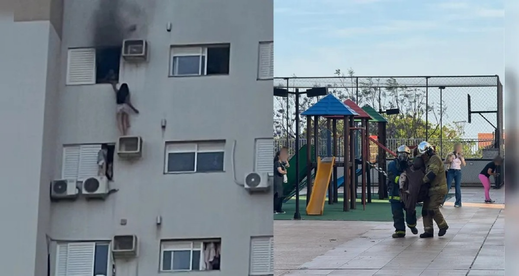 Mulher se pendura para salvar mãe e criança durante incêndio em prédio no PR