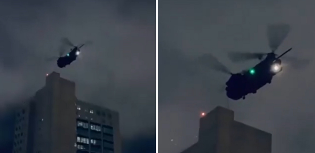 É #FAKE que vídeo de helicóptero sobrevoando prédio mostre ataque dos EUA na Venezuela; cena exibe exercício militar de 2023 em Miami