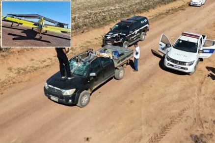 Durante a manobra, a aeronave colidiu com uma caminhonete que transportava funcionários da propriedade rural.