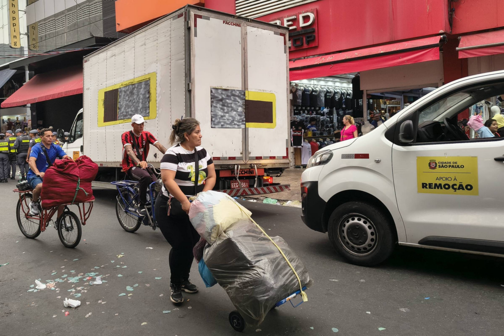 O corre-corre começa cedo na principal região de comércio popular de vestuário do país. Pontualmente às 7h, agentes da gestão do prefeito Ricardo Nunes (MDB) iniciam a varredura para recolher mercadorias de vendedores ambulantes no Brás, distrito da região central da cidade de São Paulo.