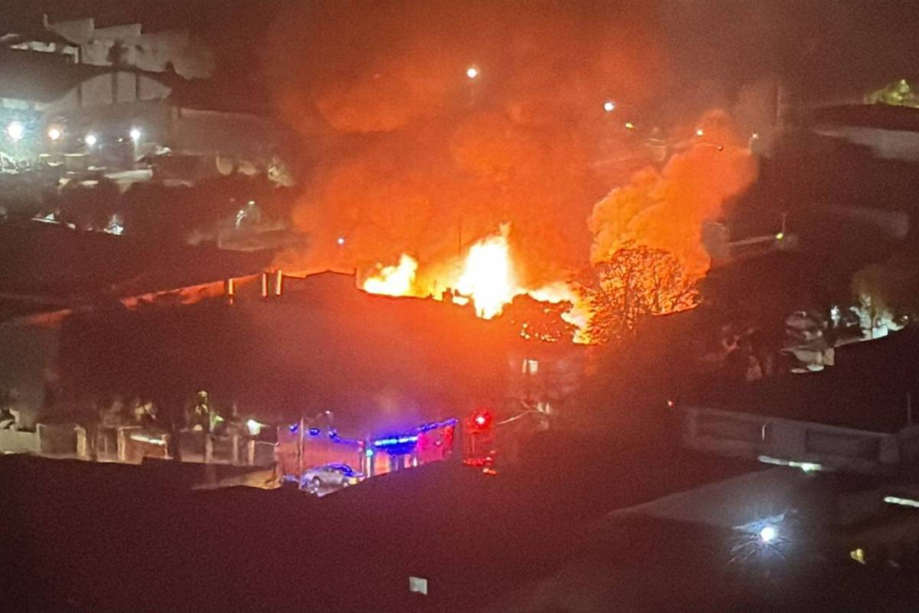 Segundo o Corpo de Bombeiros, 14 viaturas foram enviadas ao local e o fogo, que começou por volta das 22h, foi controlado no início da madrugada deste domingo (24).