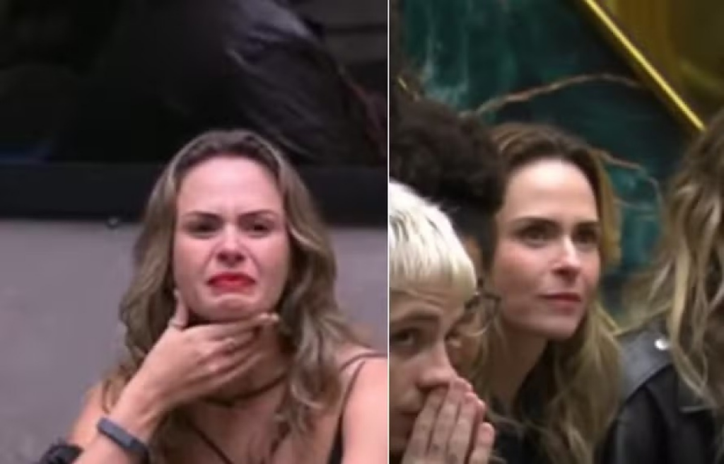 Ana Paula em dois momentos: durante paredão falso, em 2016 (à esquerda), e no paredão real, nesta última terça-feira (17), quando Breno deixou a casa